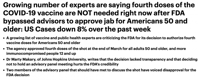 Growing number of experts are saying fourth doses of the COVID-19 vaccine are NOT needed | Daily Mail Online