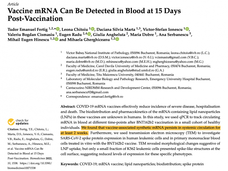 Biomedicines | Free Full-Text | Vaccine mRNA Can Be Detected in Blood at 15 Days Post-Vaccination