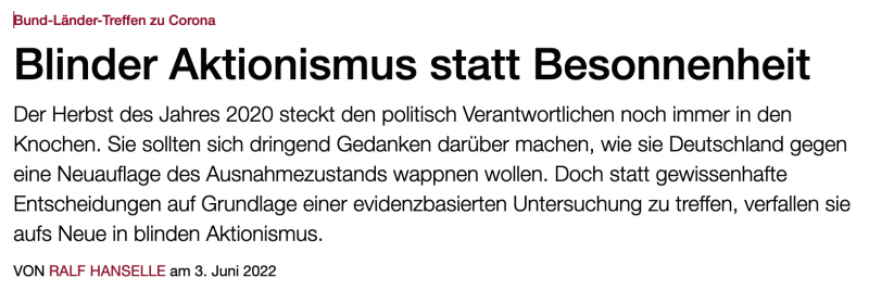 Blinder Aktionismus statt Besonnenheit - kluger Artikel in Cicero