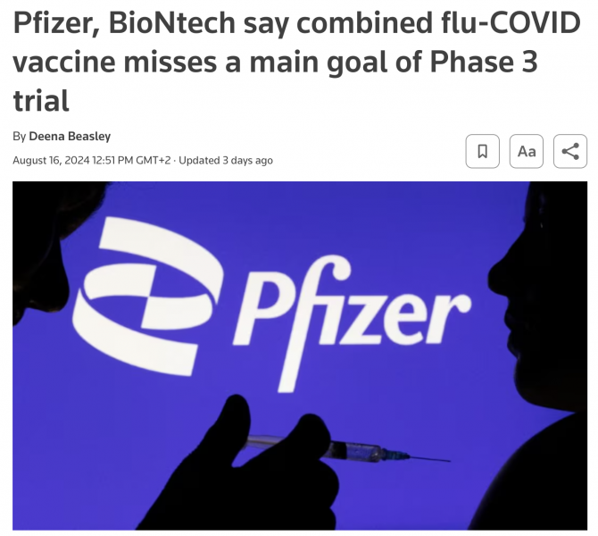 Pfizer/BioNtech räumte ein, dass der neu entwickelte mRNA-Kombinationsimpfstoff gegen Covid und Influenza ein wesentliches primäres Studienziel verfehlte: in der laufenden Phase III-Studie blieb die Immunogenität bei Influenza B deutlich hinter der konventioneller Grippeimpfstoffe zurück.
