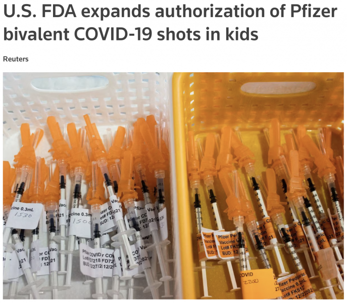 U.S. FDA expands authorization of Pfizer bivalent COVID-19 shots in kids | Reuters