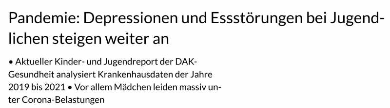 DAK-Report: massive Belastung der Jugendlichen durch die Coronoia (NICHT: Covid-19)