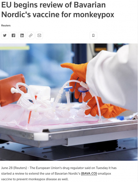 EMA prüft Zulassung von Imvanex gegen Affenpocken (die Zulassungsstudien als Pockenimpfstoff liefen allerdings ohnehin mit Affenpocken-Viren... )