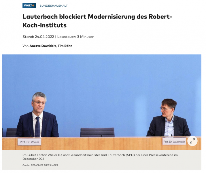 Bundeshaushalt: Lauterbach blockiert Modernisierung des Robert-Koch-Instituts - WELT