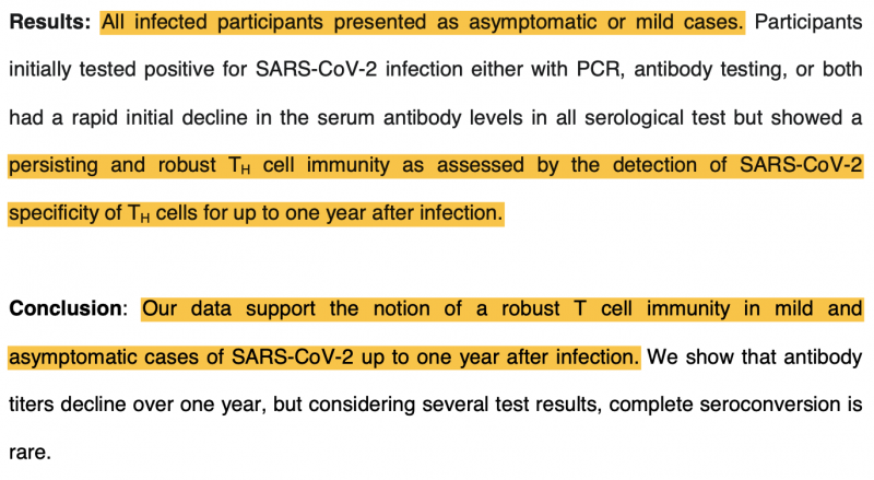 #Genesen: selbst nach asymptomatischen Verläufen robuste zelluläre Immunität über mindestens ein Jahr (Studie aus Deutschland! - es gibt sie...)