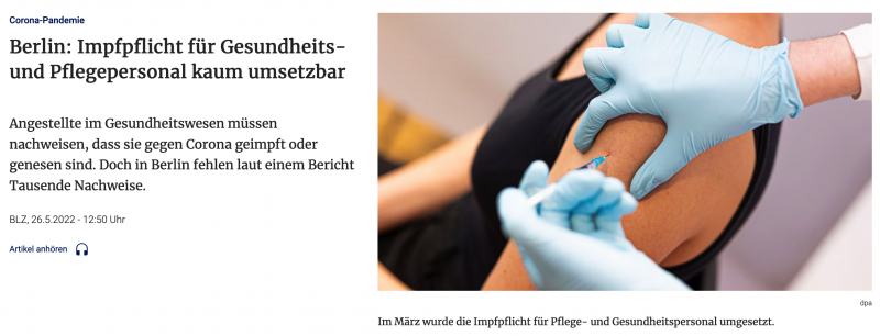 Impfpflicht im Gesundheitswesen: in Berlin kaum umsetzbar