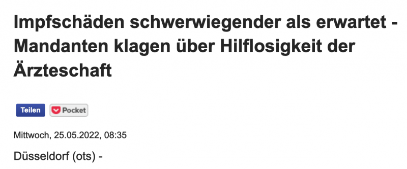 Impfschäden schwerwiegender als erwartet - Mandanten klagen über Hilflosigkeit der ... | Presseportal