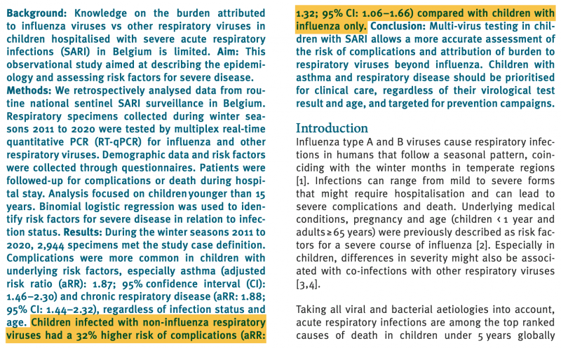 Eurosurveillance | Influenza versus other respiratory viruses – assessing severity among hospitalised children, Belgium, 2011 to 2020