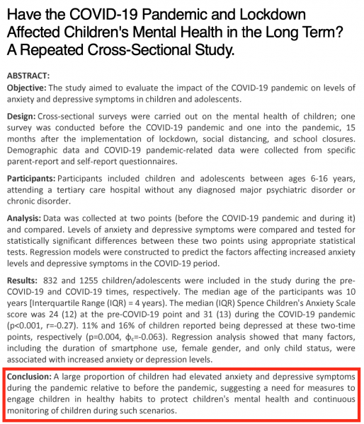 ... die Lösung ist jedoch keineswegs, die Gesundheit der Kinder in "such scenarios" zu überwachen, sondern niemals wieder Kinder und Jugendlichen diesen unverantwortlichen Einschränkungen auszusetzen!