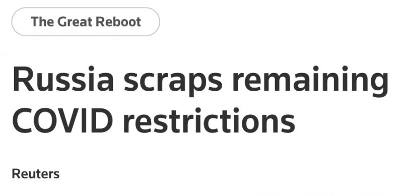 Russia said on Friday it was ending all restrictions to combat the spread of COVID-19, including the requirement to wear masks, citing a steady decline in deaths from the virus.