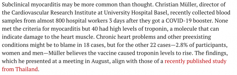 Article makes mistake of conflating subclinical myocarditis based on screening cardiac MRI (fake news) with Subclinical myocarditis based on sig. tn elevation