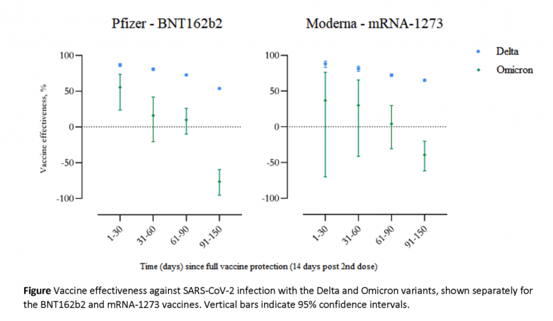 Vaccine effectiveness against SARS-CoV-2 infection with the Omicron or Delta variants following a two-dose or booster BNT162b2 or mRNA-1273 vaccination series: A Danish cohort study | medRxiv