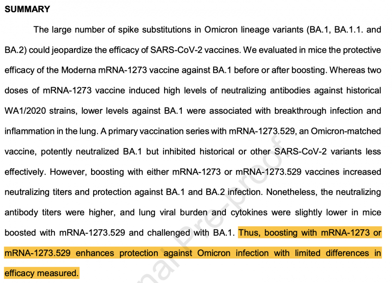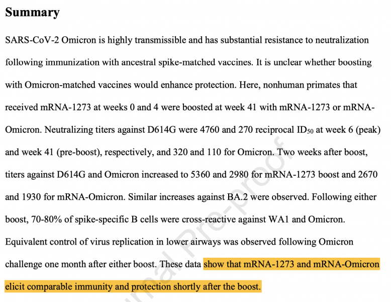 Damit erweist sich ein behaupteter, angeblich wesentlicher Vorteil der mRNA-Technologie - die rasche Anpassbarkeit bei mutierenden Viren - als wohl doch komplizierter als gedacht und derzeit als de facto nicht existent.