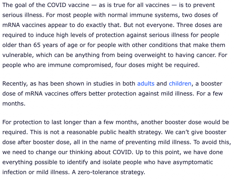 Paul Offit: Let’s learn to accept that the goal of COVID vaccines is to prevent severe and not mild illness, and stop talking about frequent boosting.