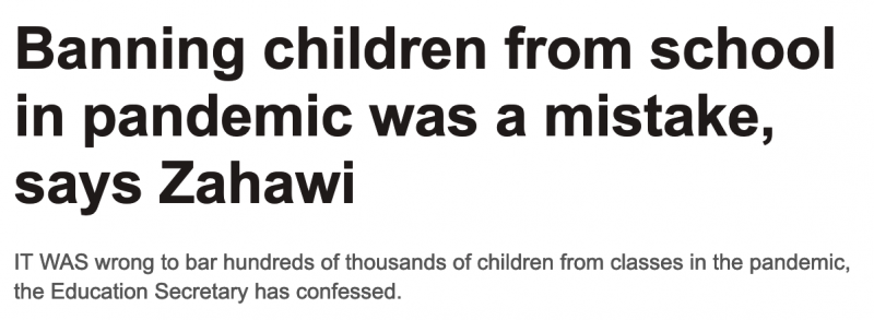 IT WAS wrong to bar hundreds of thousands of children from classes in the pandemic, the Education Secretary has confessed.