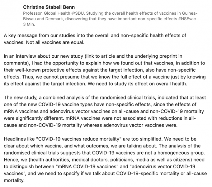 Christine Stabell Benn on LinkedIn: A key message from our studies into the overall and non-specific health
