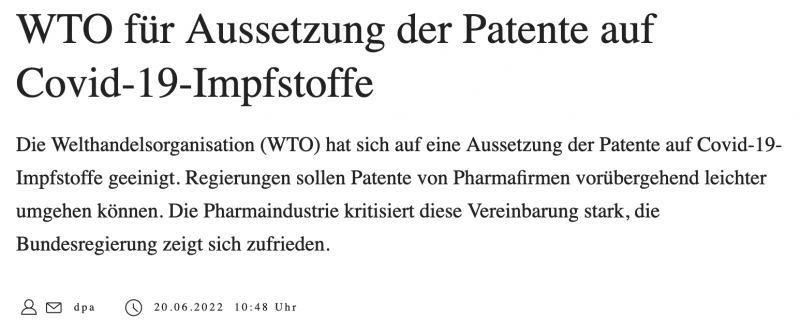 Die Welthandelsorganisation (WTO) hat sich auf eine Aussetzung der Patente auf Covid 19-Impfstoffe geeinigt. Die Pharmaindustrie kritisiert diese Vereinbar...